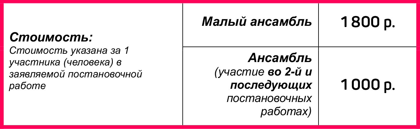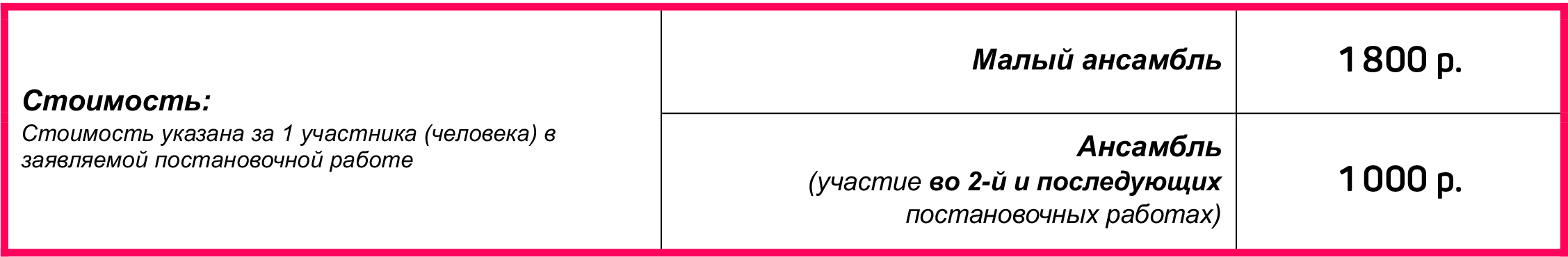 Стоимость пакетов участника и дополнительных услуг, указанные в разделе финансовых условий для иногородних коллективов, является предварительной и действующей до отзыва настоящей редакции положения. Оргкомитет имеет право вносить изменения в стоимость, в случае повышения тарифов на размещение и/или питание со стороны мест размещения. Данное условие не распространяются на оплаченные пакеты участника и на пакеты участника, по которым в установленный срок внесена предоплата.